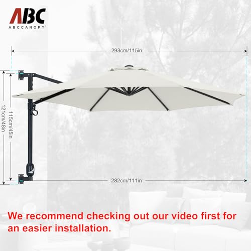 ?Saving Space?This wall mounted patio umbrella does not need an umbrella stand, just mount it to the wall with screws, saving you space. NOTE 1: WOODEN WALLS ARE NOT SUITABLE?NOTE 2?ALSO CHECK OUT THE INSTRUCTIONS AND VIDEO TO MAKE INSTALLATION EASIER!