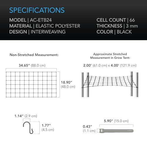 Versatile steel hooks securely clip the height-adjustable trellis net onto your grow tent's frame.