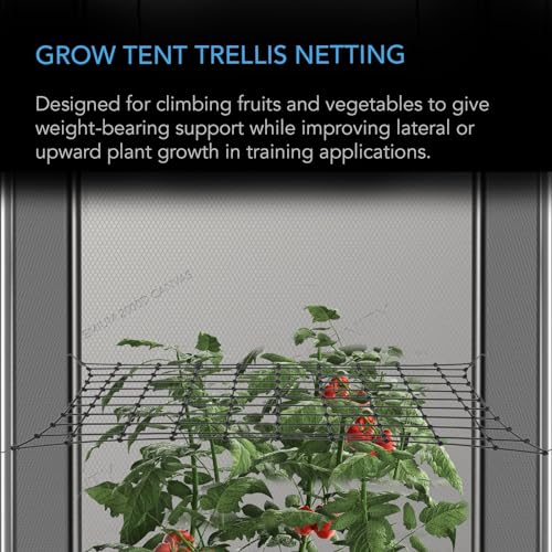 Grow tent net designed to improve lateral plant growth and support heavy yields like fruit and buds.