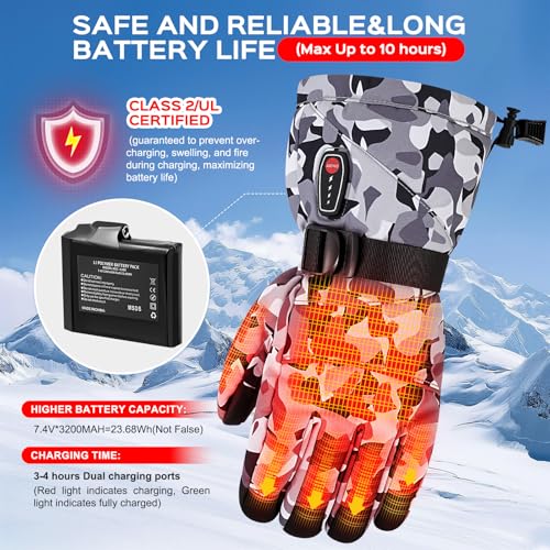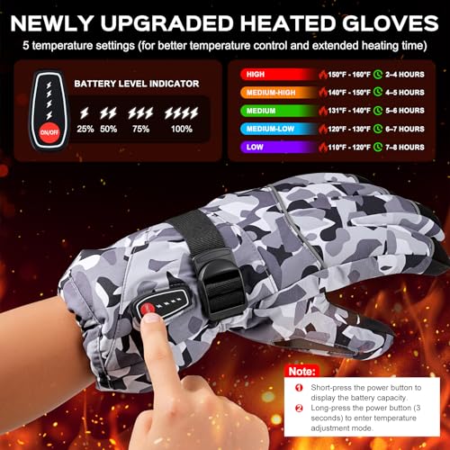 [ 5-Temp Settings & Extended Battery Life ] Experience customizable warmth with 5 heating levels (110°F-160°F). Enjoy up to 10 hours of continuous heat on low setting (7-8 hours) or powerful warmth for 2-4 hours on high. The clear battery indicator (25%/50%/75%/100%) keeps you informed of power levels.