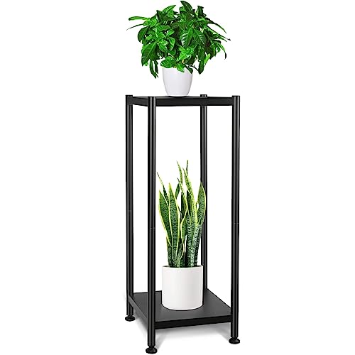 Simple Design: This Two Tier plant stand can blend in with most of your home decor and furniture, provide enough space to display various plants, flowers, bring a natural and peace to your home. Dimensions: 11.5L x 11.5W x 32H inches, suitable for medium size pots, large and tall plants. The nonslip foots protect the floor for damage while reducing noises from moving.