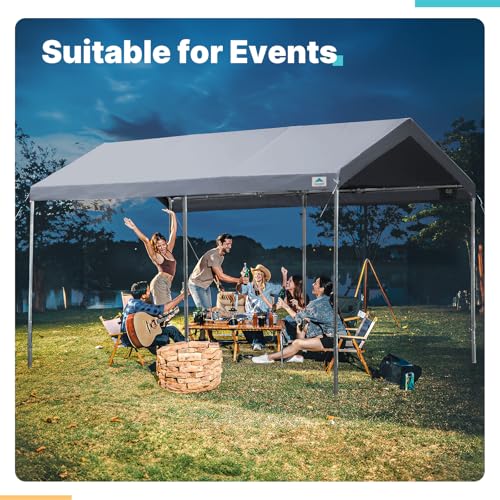ADVANCE OUTDOOR 10x15 ft Heavy Duty Carport Potable Car Canopy Garage Party Tent Boat Shelter, Adjustable Height from 9.5 ft to 11 ft, Gray