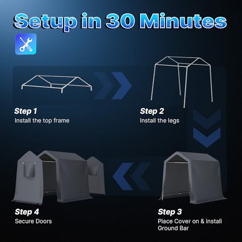 ?Various Use??The portable storage shelter can be a motorcycle storage shelter, ATV storage shed, bike storage tent, or small vehicle garage shelter. It is also suitable for small lawnmowers, firewood or any other gardening tools.