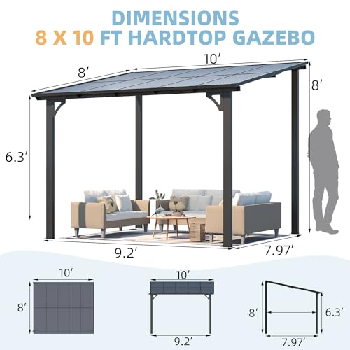 Comprehensive Protection: The awning roof of the pergola covers an area of 80 Sq.Ft., providing protection against harmful UV rays and rainwater.