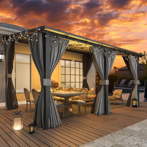 Comprehensive Protection: Equipped with sunshade curtains and mosquito netting, ideal for various situations, especially for nighttime or mosquito protection. The gazebo's sunshade canopy covers up to 140 square feet, effectively blocking harmful UV rays and rain, making it suitable for all weather conditions, providing an all-around comfortable outdoor experience.
