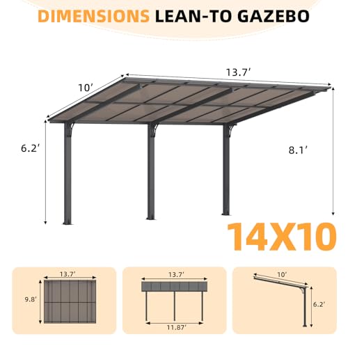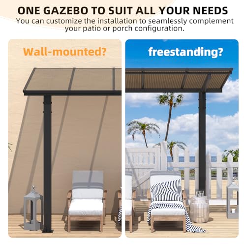 Distinguished Craftsmanship: Designed for both elegance and resilience, our freestanding lean-to gazebo anchors securely to the ground with robust stakes, allowing effortless placement in any corner of your patio. Unlike traditional wall-mounted gazebos, it provides steadfast support without compromising your walls, offering an impeccable balance of form and function.