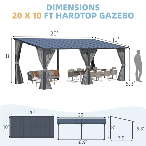 Comprehensive Protection: The awning roof of the pergola covers an area of 200 Sq.Ft., providing protection against harmful UV rays and rainwater.