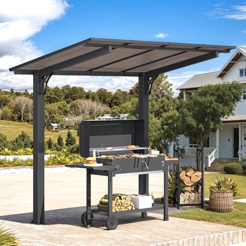 AECOJOY 8' x 5' Gazebo Outdoor Pergola for Patio, Freestanding Lean to Hard Top Grill Gazebo Carport Pergolas and Gazebos Clearance with Roof, Small Wall-Mounted Heavy Duty Awnings for Patio, Decks