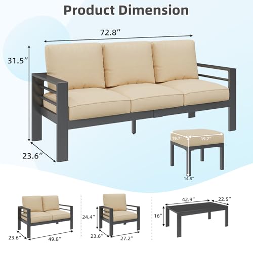 All-Aluminum Frame: Crafted with a powder-coated aluminum frame, this outdoor furniture set is resistant to rain, snow, and sun exposure, ensuring long-lasting durability. Its lightweight design allows for effortless movement and repositioning