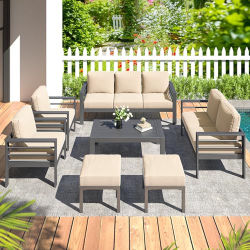 Extra Ottomans/Chairs: The AECOJOY modern patio furniture set includes two ottomans that not only serve as comfortable footrests but can also as extra seating, making them ideal for accommodating guests
