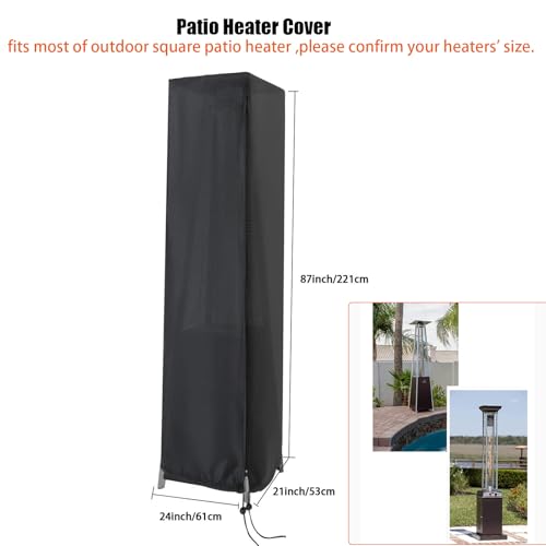 Patio Heater Cover: 87" H x 21" W x 24" D Inch.Thicker Oxford (420D) Fits most of outdoor square patio heater. Universal fit for many heater in the market size patio heater