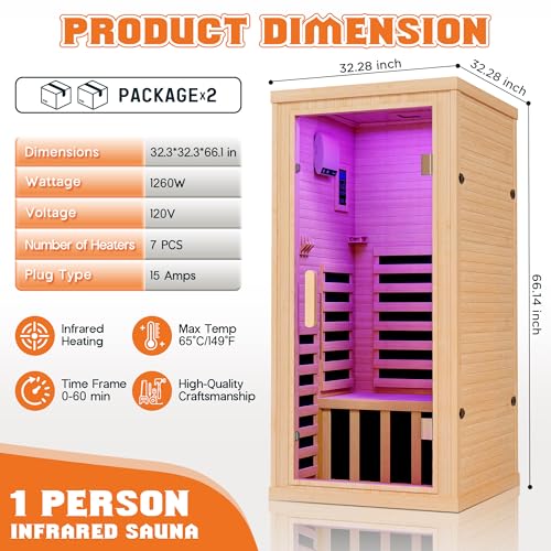 Crafted for Style, Built to Last: Our sauna is made with premium Canadian hemlock wood, safety-tempered glass, and a door seal strip—combining natural warmth with durability and clean design