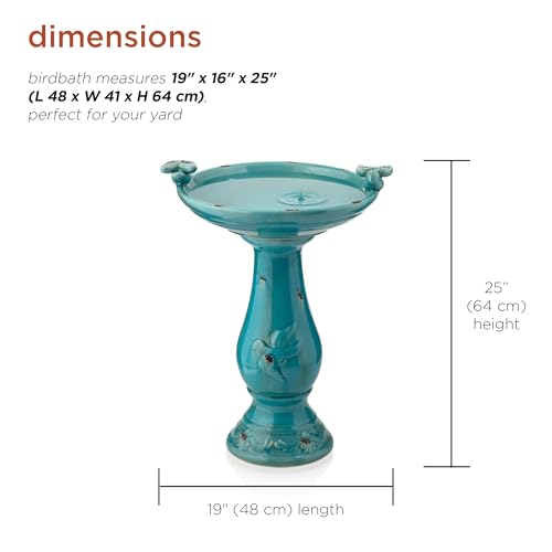 IDEAL SIZE: Birdbath measures 19"L x 16"W x 25"H, the perfect size for your yard, and includes a one-year manufacturer's warranty from date of purchase
