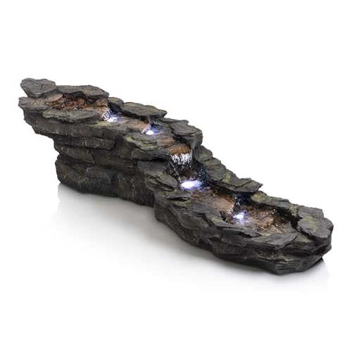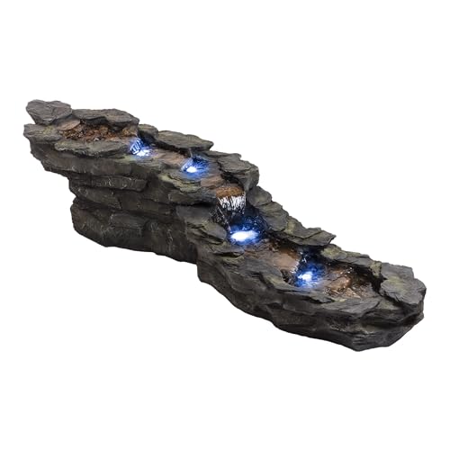 Integrated LED Lights: Equipped with LED lights, this garden waterfall beautifully illuminates the cascading water, providing a soft, inviting glow in the evening, enhancing your outdoor space after dark.
