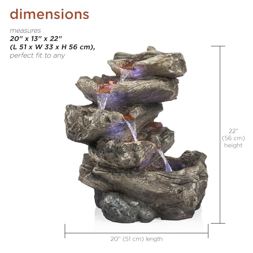 VERSATILE GARDEN DECOR WITH LED LIGHTS: Cascading rainforest waterfall standing fountain with long lasting LED lights provides a tranquil and soothing addition to your outdoor living space, porch, lawn or interior spaces