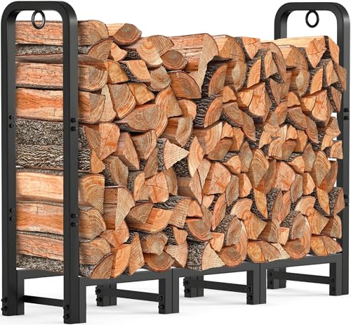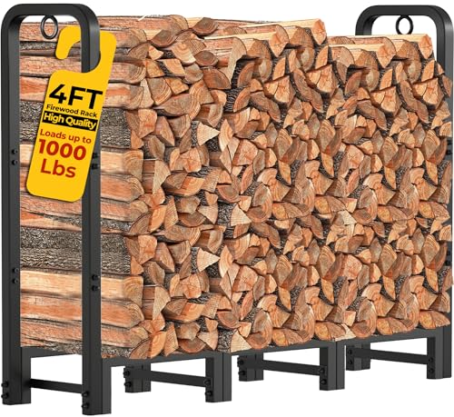 Firewood organized: amagabeli 4' fireplace log rack measures 48 x 48 x 14 inch, 6.7" off the ground. Heavy duty fire wood log rack with kinding holds and stores up 1/4 face cord of firewood. Perfect size firewood storage rack to fit on outdoor back porch, back yard deck, outside backyard fire pits, under eaves, tool shed, wood shed, chaotic pile inside the cabin, indoor garage, family room, covered patio to hold enough wood for fireplace all seasons.