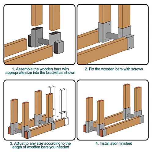Adjustable Firewood Log Rack: Each Amagabeli wood storage bracket measures 13-inch length by 3-inch width by 6.5inch depth. Inside 8 holes fit the wood with cross section of 3.5" x 1.5", maybe a little tight for 2x4 studs bought from your local store.If it is, please kindly shave off some from 2 sides of the 2x4s and then you will get a nice rack which the width and height whatever you want.
