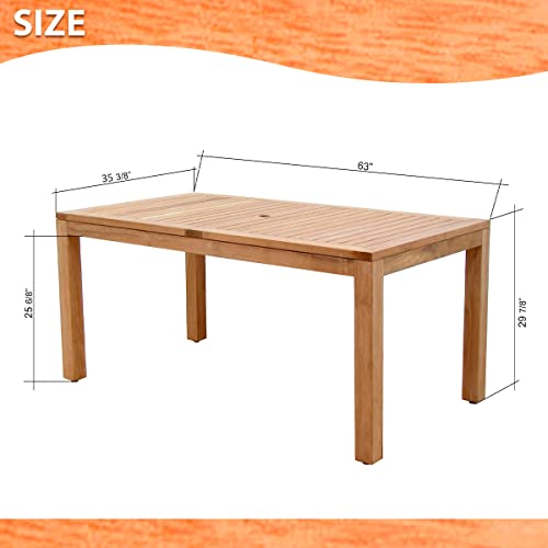 [PREMIUM TEAK] Crafted of premium teak wood and finished by hand, this dining set is a natural match for your patio. It combines the organic look of wood and clean, contemporary lines, for a versatile outdoor option.