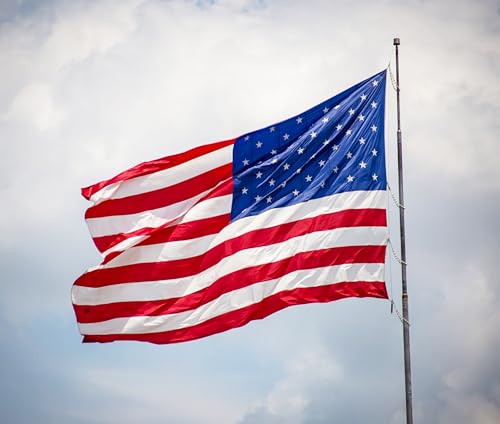 Celebrate your love for the USA with this weather-resistant outdoor American flag, featuring impressive embroidered stars and sewn stripes for a high-quality display of American pride in your outdoor space