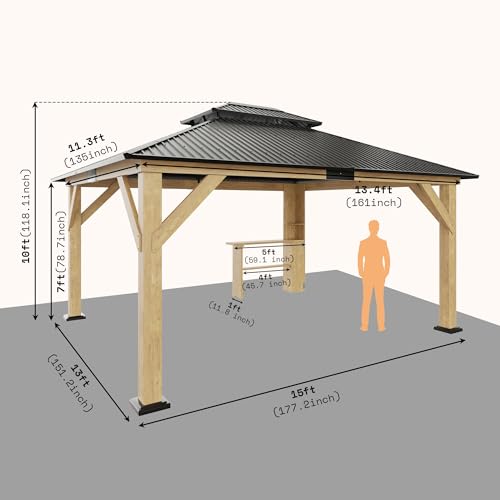 Sturdy Structure: Construct patio gazebo with fir beams around the perimeter and fir columns. Ensure stability with reinforced support legs, guaranteeing a safe & durable foundation.