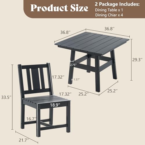 5-Piece Dining Chair Set: Contains 1 dining table and 4 ergonomic dining chairs. 36.8-inch squar dining table offers ample space for meals or gatherings, making it perfect for outdoor dining for 4
