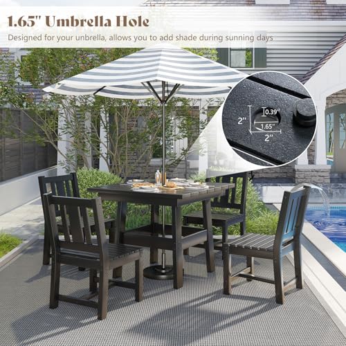 Practical Umbrella Hole: Patio dining table features a 1.66" umbrella hole allows you to add shade during sunny days. Perfect for versatile use in family gatherings, parties, and other outdoor settings