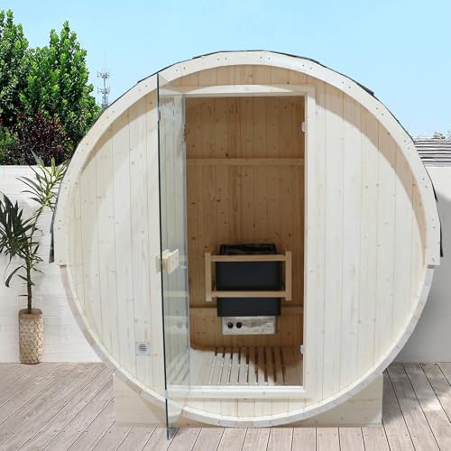 Sauna Accessories: The hot rock barrel sauna kit includes a sauna bucket, a scoop, a thermohygrometer, a sauna lamp, a 4.5kw heater, sauna stones, 8mm transparent, sauna hourglass, rubber hammer, wall lamp. It can better enhance the sauna experience. Ensuring the best steam sauna experience every time