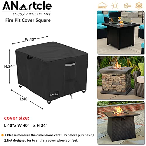 Square Outdoor Fire Pit Table Cover 40 inch-Includes an outdoor cover designed for a 40L x 40W x 24H-inch patio fire pit table (Advice for Size Choosing: If the diameter and height of your table is 1 inch or more smaller than this size, please choose it.)