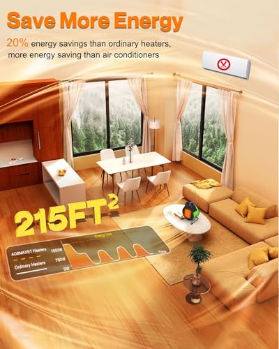 Rapid Heating Portable Heater: The powerful electric heater features PTC ceramic heating technology and a 2600 RPM high-speed fan that produces hot air in just 2 seconds. This efficient design ensures that the heat is evenly distributed throughout the max 215 sq ft area
