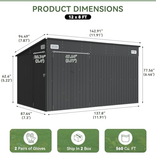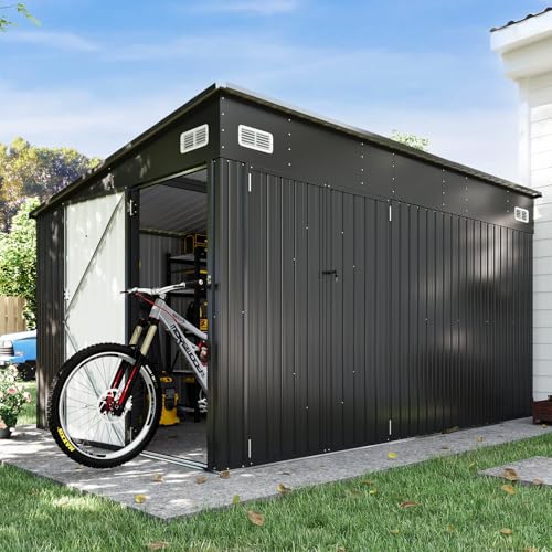 Unique Design and Slopped Roof: Elegant and sophisticated black design makes it more durable. In addition, the metal tool house is designed with a sloping roof that allows it to drain quickly on rainy days to prevent rainwater from accumulating