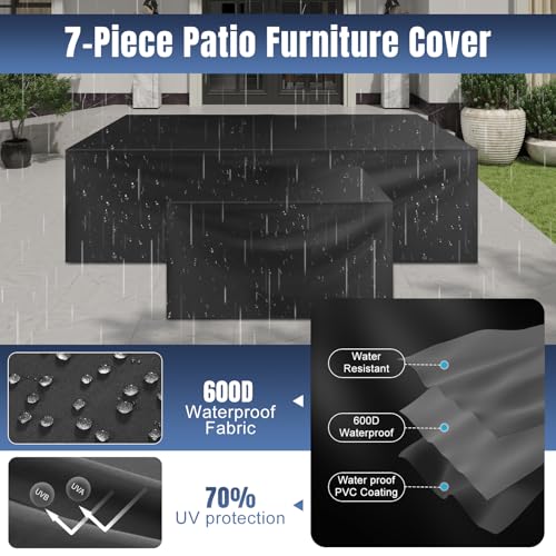 Waterproof Cover Included: Our patio furniture set comes with a high-quality waterproof cover made from strong Oxford fabric. The cover has a dual-layer design with a PVC coating on both sides. This means you can leave your furniture outside on rainy days without worrying about it getting wet.