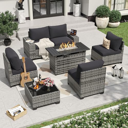 High-quality material: Our outdoor furniture is made from galvanized steel, which is coated with powder to protect it from rust. It is very sturdy, so it is stable and safe. The rattan is made from PVC, so it can handle all types of weather, including being in the sun, being wet, and changing temperatures, perfect for your patio.