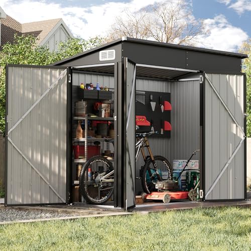 Unique Design and Sloped Roof: The shed boasts an elegant and sophisticated black design that not only looks great but also contributes to its durability. What's more, it features a sloped roof. This design allows rainwater to drain quickly on rainy days, preventing any accumulation that could potentially damage the shed.