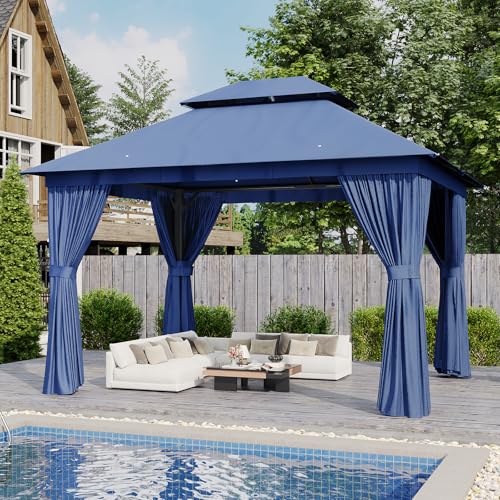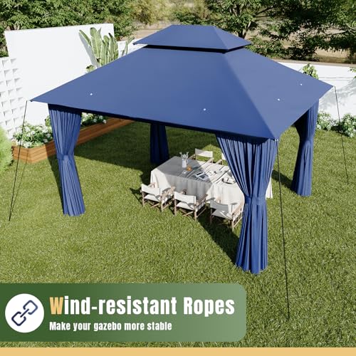 ?Ventilated Double Roof?Ventilated Double Roof is beautiful and practical, repelling mosquitoes through the mesh between the tops, effectively blocking sunlight, UV rays, and mosquitoes while maintaining air circulation. The outdoor gazebo is made of waterproof polyester fabric that is both fade-resistant and UV-resistant UPF 50+