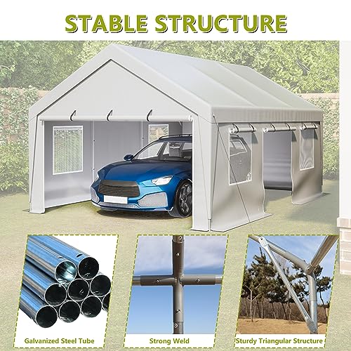 Robust Construction: This 13x20 FT Outdoor Car Tent boasts a strong galvanized steel tube framework, ensuring stability and durability even in adverse weather conditions. Whether it's intense sunlight or heavy rain, this tent has got you covered.