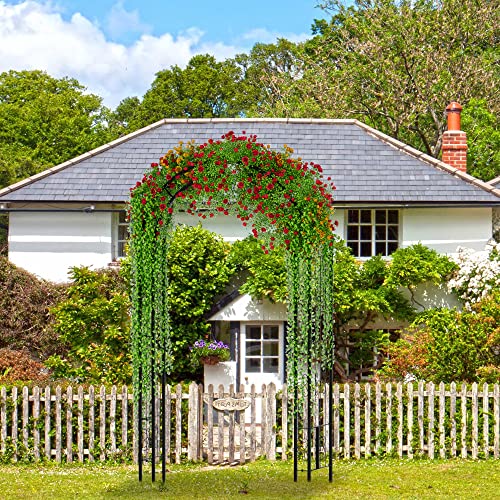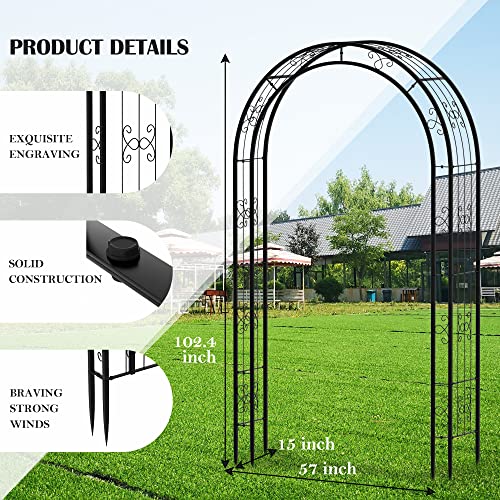 ?Perfect for Outdoor Use?Our metal arch is mainly designed as an eye-catching decoration on garden, yard, patio or park. You can place it in front of your doorway or the pavement, making a perfect entry out of it. Or you can use it as a decorative backdrop for your wedding to bring you wonderful memories.Arch size: 57" wide x 102" high,8.5ft.