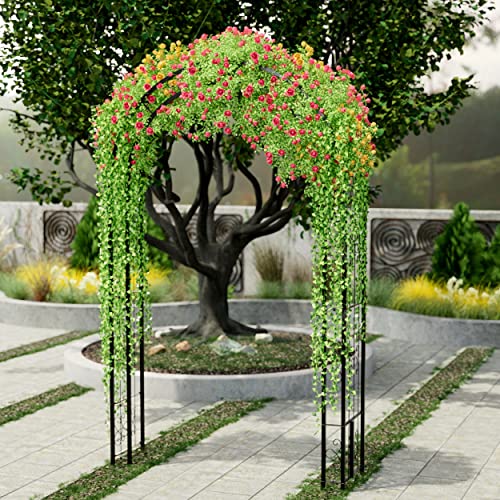 ?Durable & Rust-free Material?This outdoor garden arbor is made of strong steel, which is durable and stable. Every step was carried with great care. Covering with black powder coating, this steel trellis keeps its rust-free surface for years standing in outdoor space.