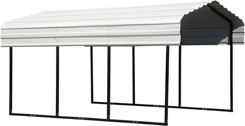 Arrow Shed 10' x 15' x 7' Carport Car Canopy with Galvanized Steel Horizontal Roof, Garage Shelter for Cars and Boats, Eggshell