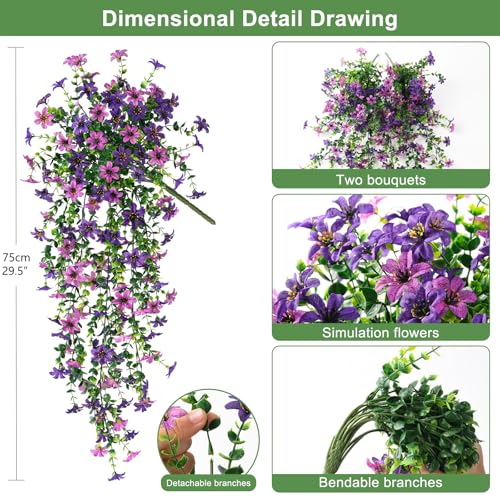 Outdoor Artificial Flowers:The artificial outdoor plants branches are made of high-quality metal wire and plastic. The faux flowers are maintenance-free,durable and recyclable. The artificial flowers can keep fresh for a long time. It’s easier to maintain than fresh flowers,more affordable.Don't need have time watering,pruning,and other maintenance.
