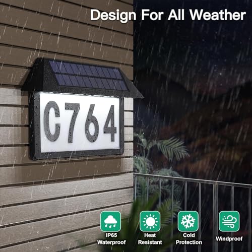 Weather Resistant and Suitable for Outdoor Use:Designed with an IP65 waterproof rating and made of durable ABS and Acrylic materials, the wall-mounted house number sign can withstand various weather conditions, including rain and snow. The fully enclosed integrated design prevents water from entering the interior, ensuring optimal performance in most weather conditions. The solar charging LED address number is perfect for year-round outdoor use