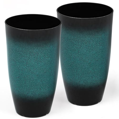 SLEEK MODERN LOOK – Upgrade your home or garden with these two tall plastic planters. Their beautiful hand-painted gradient blue-green color adds a modern, classy look. Perfect for placing on your porch, in your garden, or inside your home, they make any plant—like flowers, leafy greens, or herbs—stand out with natural beauty.