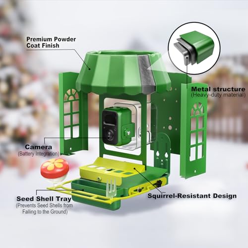 Durability To Use: This camera bird feeders for outside built like a tank and hard, Made of premium metal material and rust-resistant coating with a rust-proof finish,the outdoor bird feeder can achieve a certain degree of waterproofing and corrosion resistance.the bird box camera can withstand harsh weather conditions and also prevent damage from chewing by mammals and reptiles such as squirrels.say goodbye to rodent damage~
