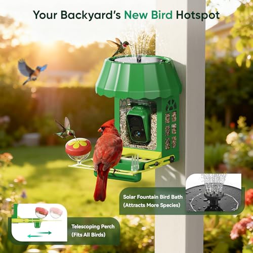 2.5K HD CLARITY & WIDE 160° VIEW + AI IDENTIFIES 10,000+ SPECIES: Enjoy a significantly broader perspective with our exclusive 160° wide-angle lens, capturing more of the action without missing a moment. This, combined with advanced AI recognition technology, helps learn about your feathered friends (30-day free trial) day or night with enhanced color night vision. Our superior optics deliver professional-grade photos and videos that standard 1080p cameras with narrow views simply can't match.