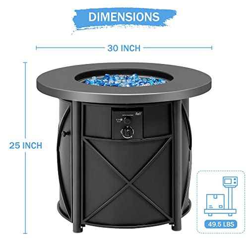 ?30 x 30 INCH ROUND GAS FIRE PIT TABLE: This gas fire pit can be converted to a large surface round outdoor table with the metal lid covered, which can be used as a conversation table when you and your friends or families sitting around in your garden