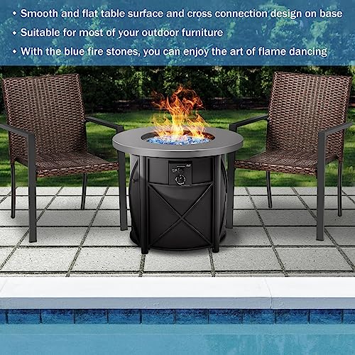?PERFECTLY FIT FOR YOUR OUTDOOR FURNITURE: With the cross connection design on the base, this gas fire pit table will integrate with your outdoor chairs and patio umbrellas, add more elegant stylish for your garden, patio, backyard and terrace