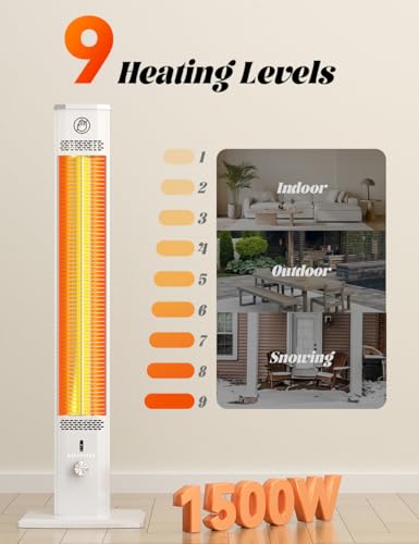 ?????9 Adjustable Heat Settings?Patio heaters for outdoor use has 9 heating levels corresponding to different powers (550/640/760/890/970/1120/1250/1350/1500W). Allowing you to precisely customize your comfort. Whether you need a gentle, soothing heat on fall night or need a powerful blast of warmth on the coldest winter days, outdoor electric heater offers unparalleled comfort level. Say goodbye to one-size-fits-all heating and hello to personalized warmth.
