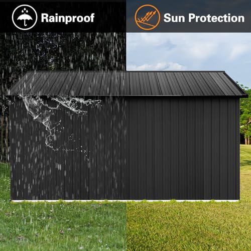 ?Structure?? Built with a unique aluminum frame for enhanced sturdiness and galvanized steel sheets with an eco-friendly coating, this shed is durable for at least 10 years, suitable for harsh weather conditions