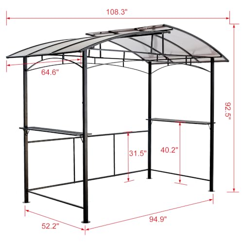 CONVENIENT SHELVES:Featuring two built-in shelves, this canopy offers ample space for food, drinks, and grilling accessories. Keep everything organized and within reach while you enjoy your time under the shelter, enhancing your outdoor cooking or entertaining experience.