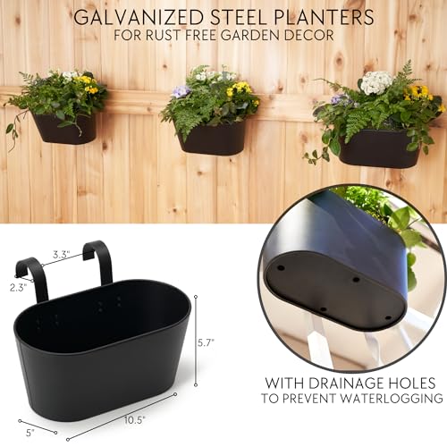 Discover Simple Outdoor Charm: Embrace the simplicity of adding a touch of nature & farmhouse style to your outdoor space with the black deck railing planter boxes! Each herb planter measures 10.5x5x5.7” without hooks and extends to 10.5x7.2x5.7” with hooks