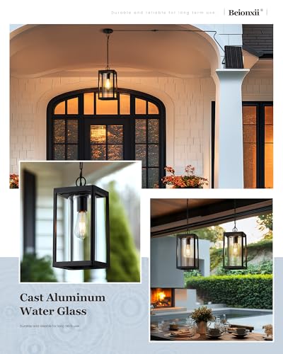Elegant Modern Design: Crafted from durable aluminum and clear glass, this hanging lantern combines line aesthetics with modern durability. Its waterproof and rust-resistant features maintain its beauty in any weather, adding warmth and style to your gazebo, pergola, or patio.